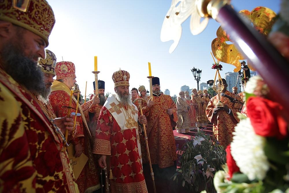 В тоже время патриарх Кирилл вспомнил и о "киевской купели" российского православия и "единый русский народ". "Да хранит Господь землю нашу русскую, русский народ, который сегодня живет в разных государствах, которые по-разному называются, да и народ наш называется по-разному, но это тот же самый народ, который вышел из киевской купели крещения".