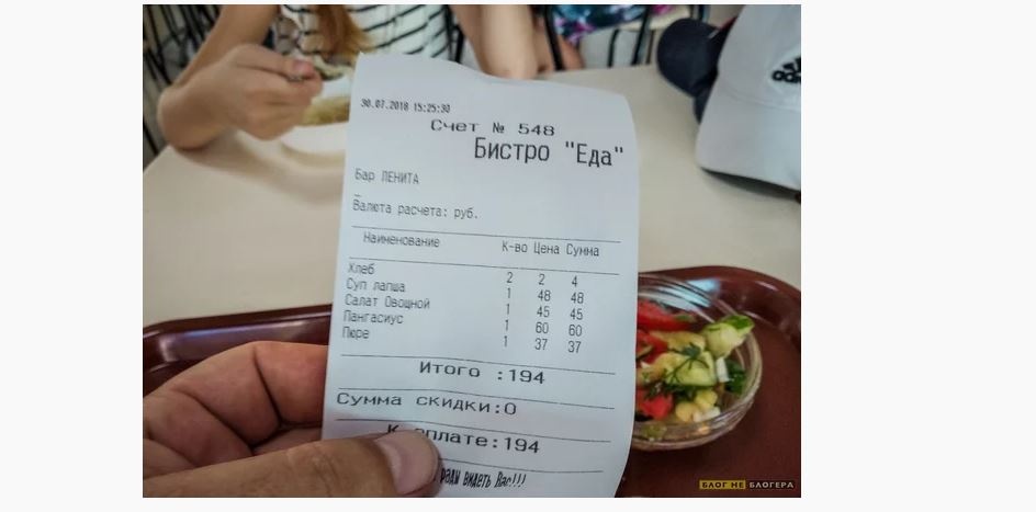 По его словам, выбор блюд в кафе внушительный, и каждое из них стоит около 55 рублей. Он обратил внимание, что цены в привокзальном кафе указаны не за крошечную порцию в сто граммов – стоимость за всю тарелку, а она немаленькая.
