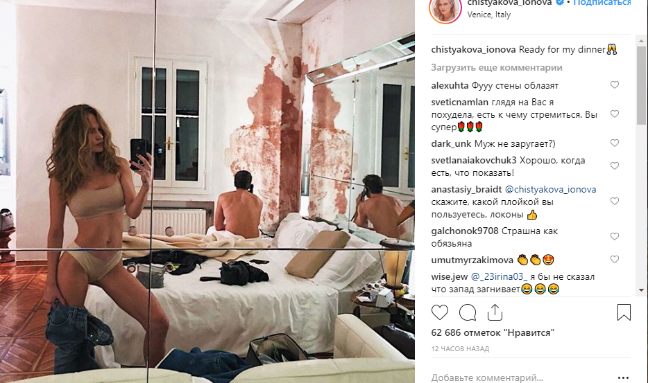 На ее странице появилось фото, на котором Наталья позирует в нижнем белье. Потография, по всей видимости, была сделана в спальне, а на ее заднем фоне можно заметить супруга Глюкозы, который с голым торсом сидит на семейном ложе. Предполагается, что супружеская пара в настоящее время проводит свой досуг на территории Италии, о чем свидетельствует геолокация под фото.