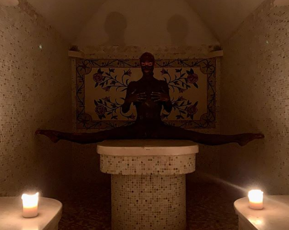 Как известно, Волочкова очень любит публиковать фотографии, сделанные в бане. Также она просто обожает демонстрировать свой шпагат. По всей видимости, в этот раз балерина решила совместить две своих «фишки» на одном фото. Дело в том, что она опубликовала фотографию, сделанную в бане, на которой видно, что Волочкова сидит на шпагате. Весьма примечательным нюансом этого фото является тот факт, что узнать на нем балерину можно только по ее шпагату. Дело в том, что ее тело было полностью измазано чем-то коричневым. Сама же Анастасия заявила, что это лечебная грязь.