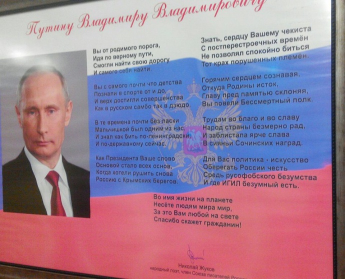 Известно, что Путин любит, когда его восхваляют. Член союза писателей России Николай Жуков написал стихотворение адресованное Президенту Путину. Пользователи социальных сетей, передает replyua.net, опубликовали фотографию стиха. В нем воспевается вся деятельность Путина, начиная с юности, заканчивая аннексией Крыма.