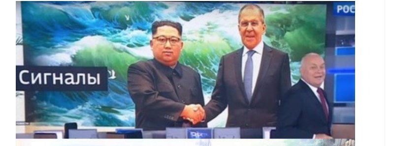 Как передает replyua.net со ссылкой на «Говорит Москва», в эфире программы Киселева на телеканале «Россия 1» ранее появилась заставка, на которой лидер КНДР улыбается, пожимая руку Сергею Лаврову, однако на самом деле снимок выглядел иначе.